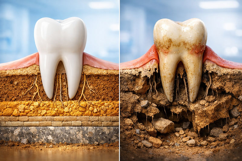 せっかく残した大切な歯が、適切なケアなしでは歯周病の温床となり、最終的には骨を溶かしてドミノ倒しのように抜け落ちてしまう。